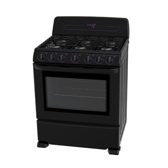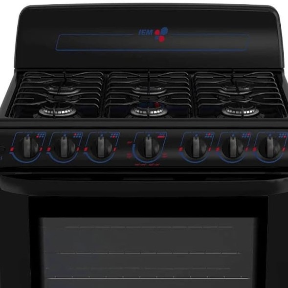 ESTUFA IEM EI3030, trae consigo 6 quemadores estándar y un horno integrado, ambos de encendido manual.